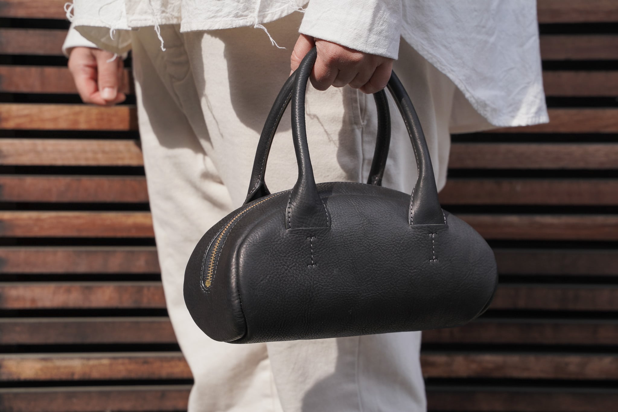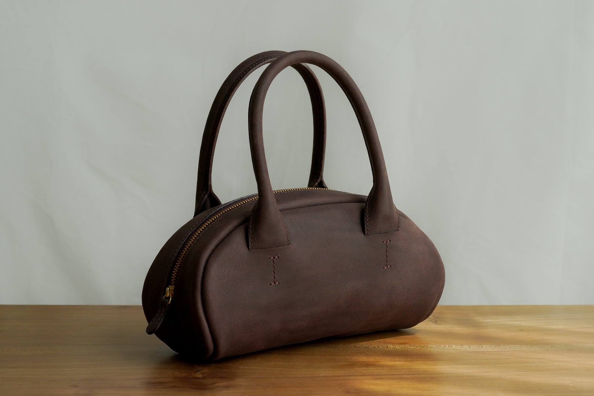 シンプルで丸みのあるフォルムに手縫いのステッチがほんのりアクセントを与えてくれます。