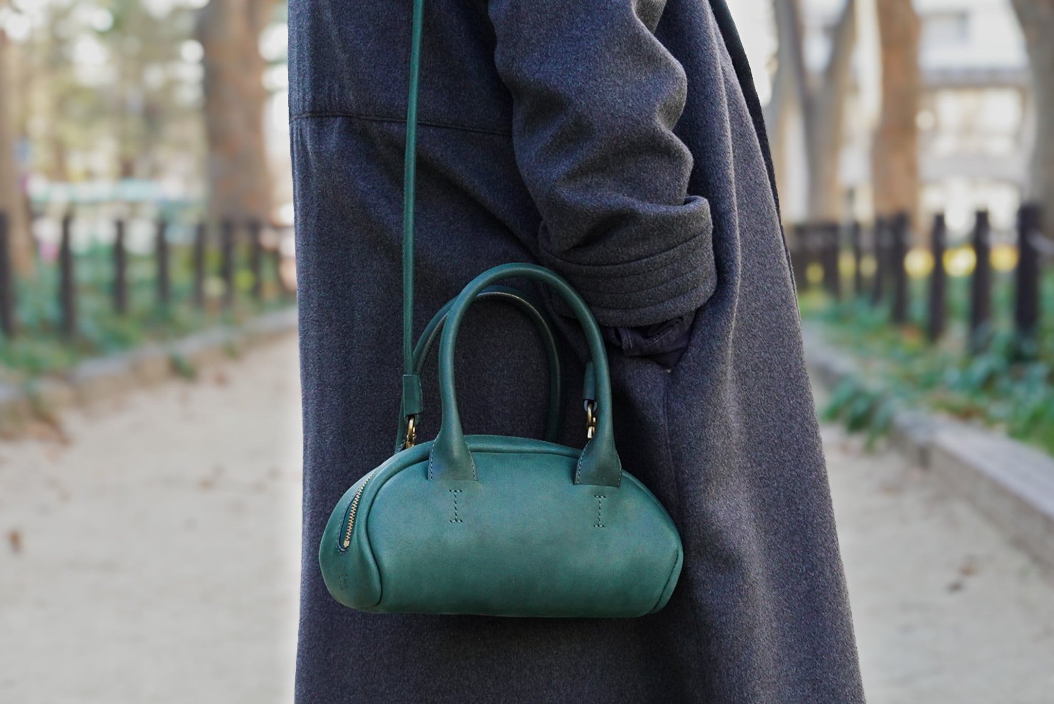 ハンドルの根本にストラップを付ければ肩掛けにもなります。(ストラップは別売りです、ストラップの販売ページでご購入ください。)簡単な取り外しなので、手持ちと肩掛けを、その日の装いに合わせて持つことができます。