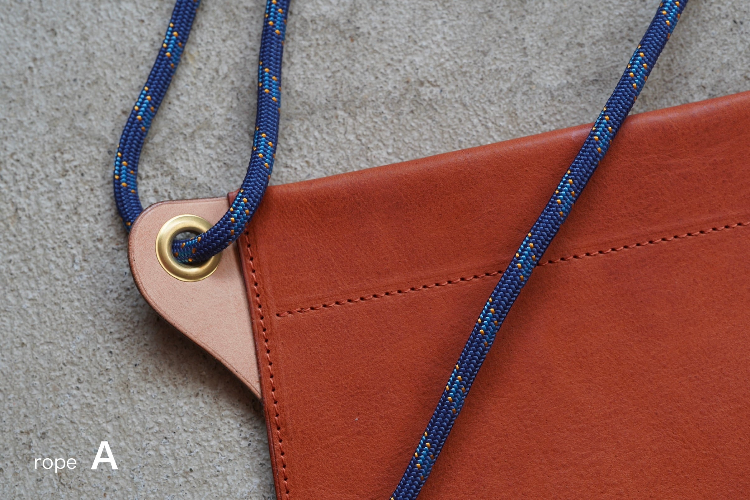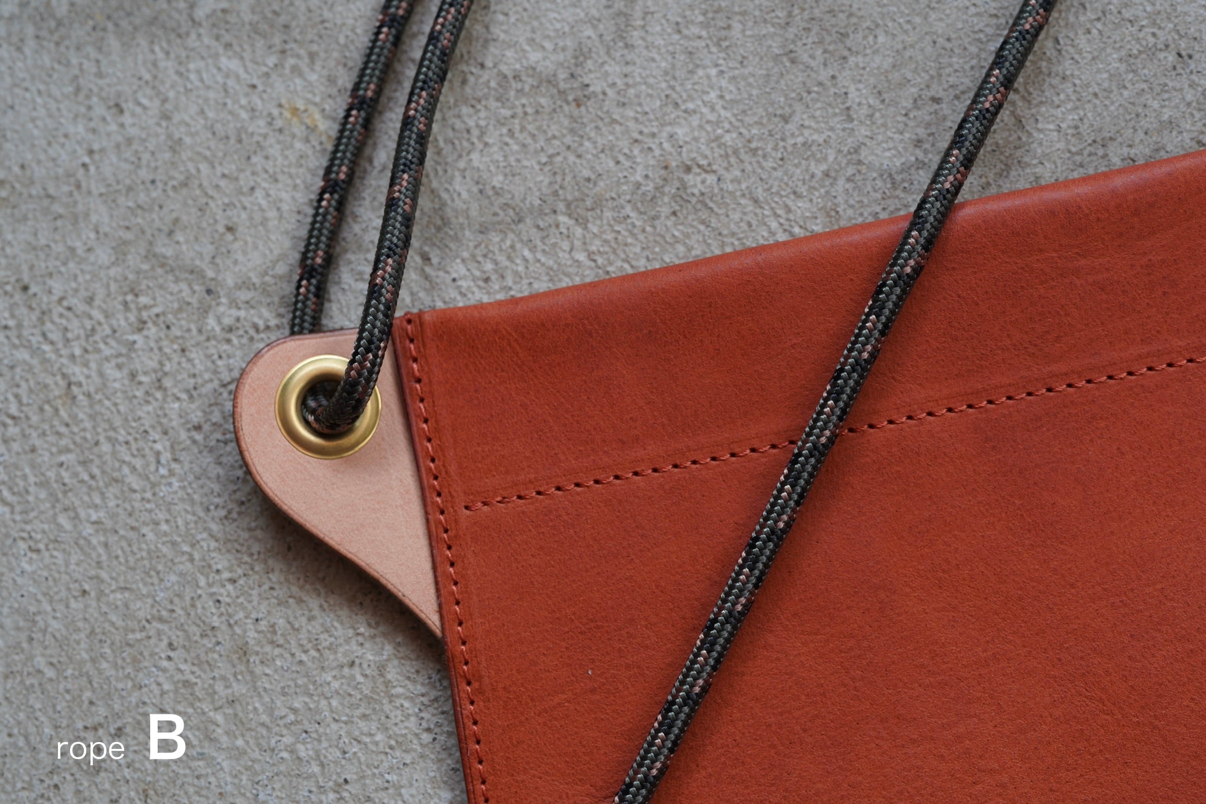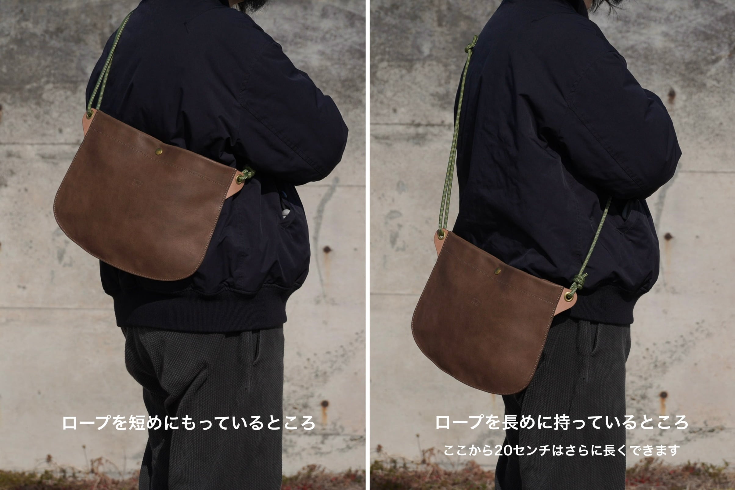 このサコッシュは、革とアウトドアロープを組み合わせたものです。