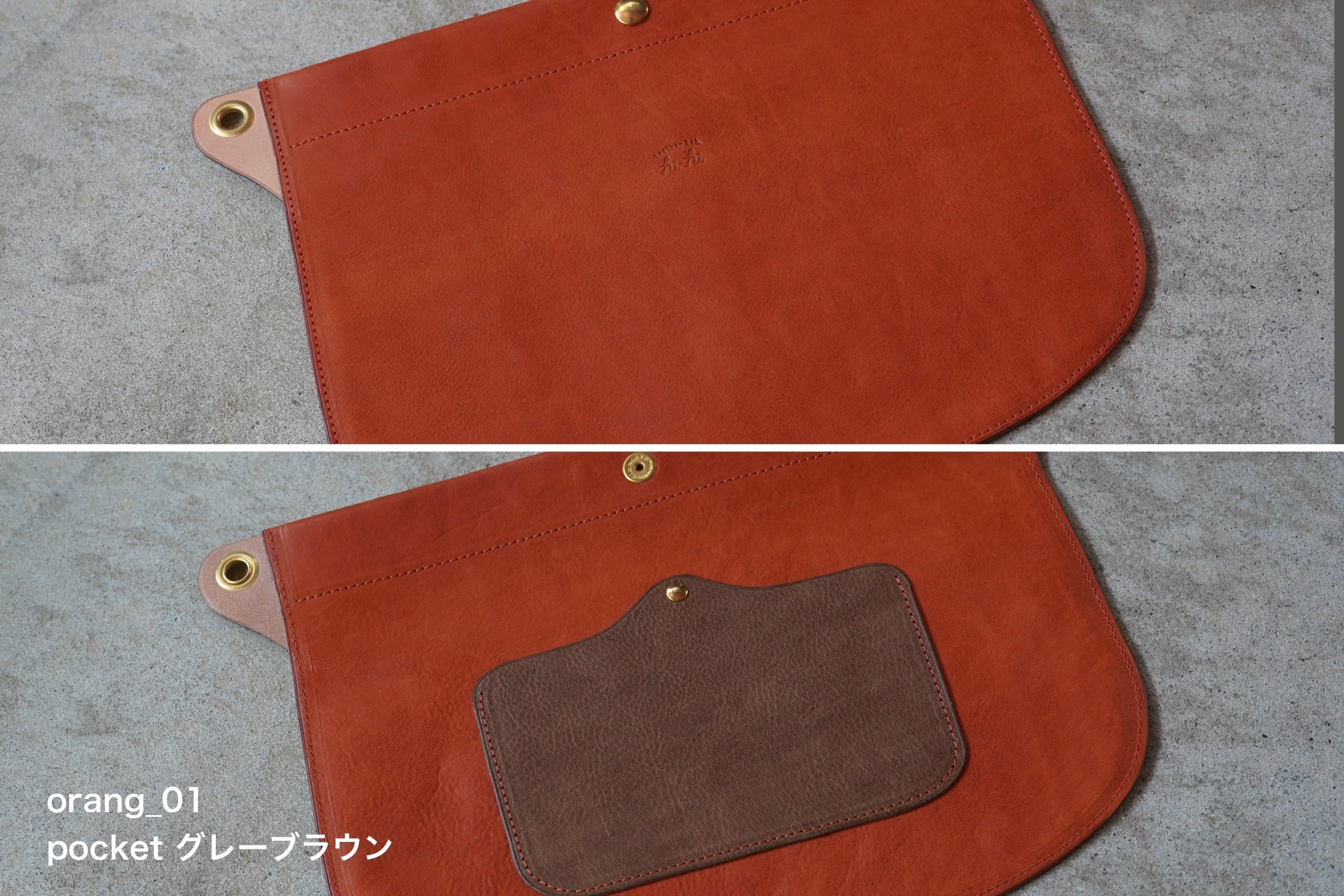 フラットな佇まいに、持ち物を入れ身につけるとふっくらと膨らみ、それが馴染んでいき連れ歩くごとに革の表情が深まっていきます。