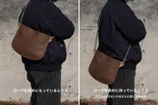 このサコッシュは身につけて完成する面白さがあります。