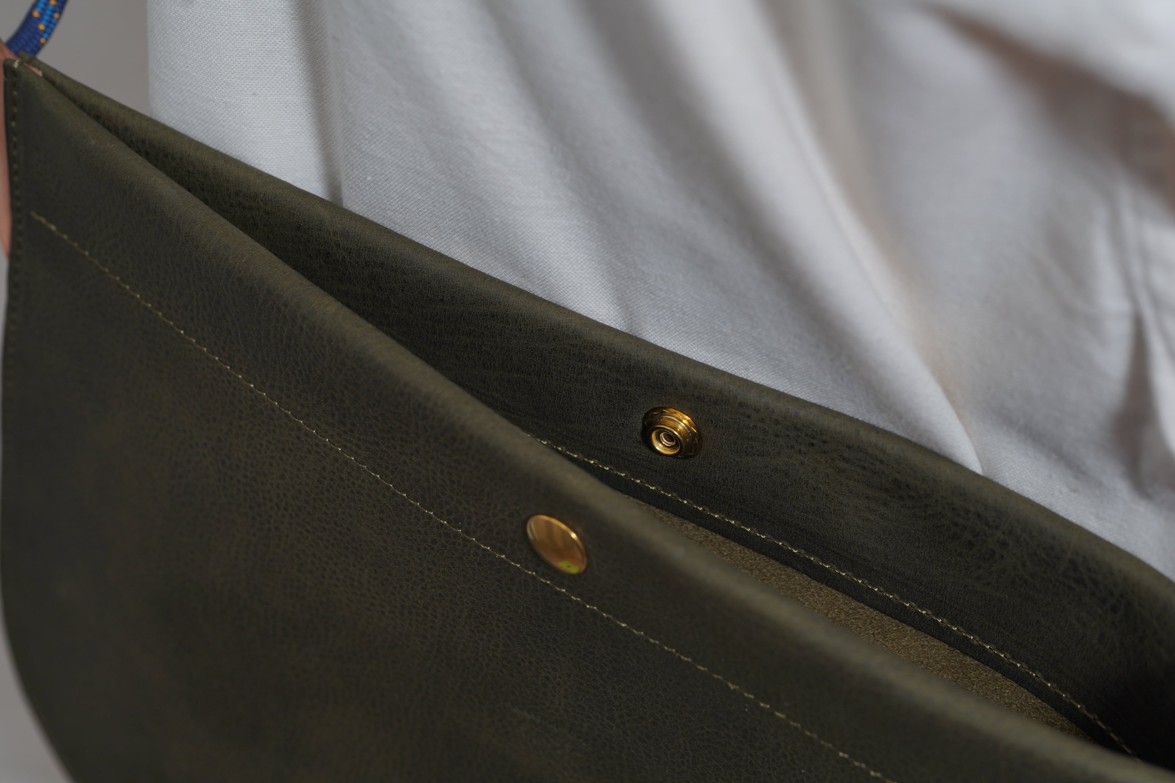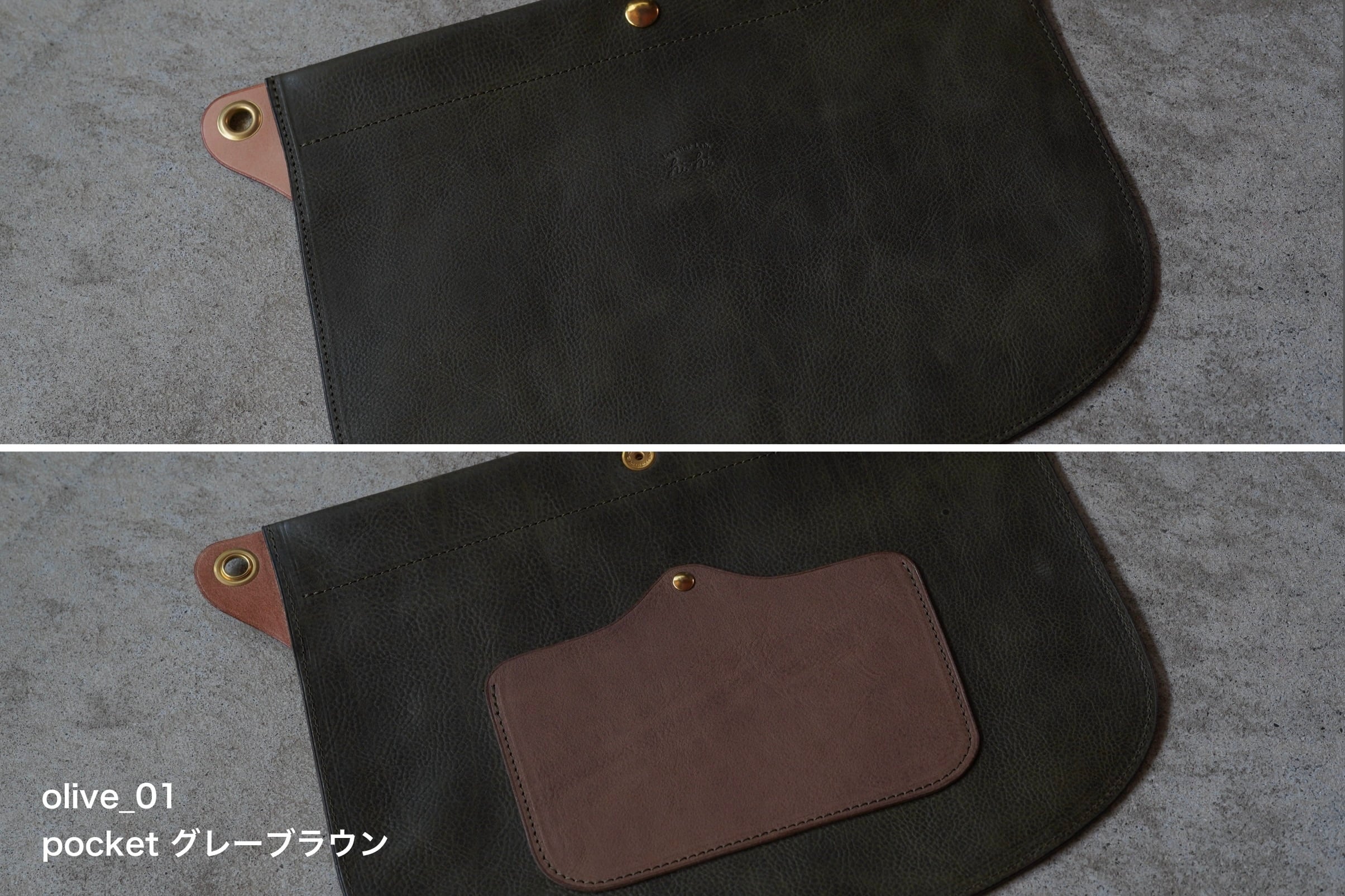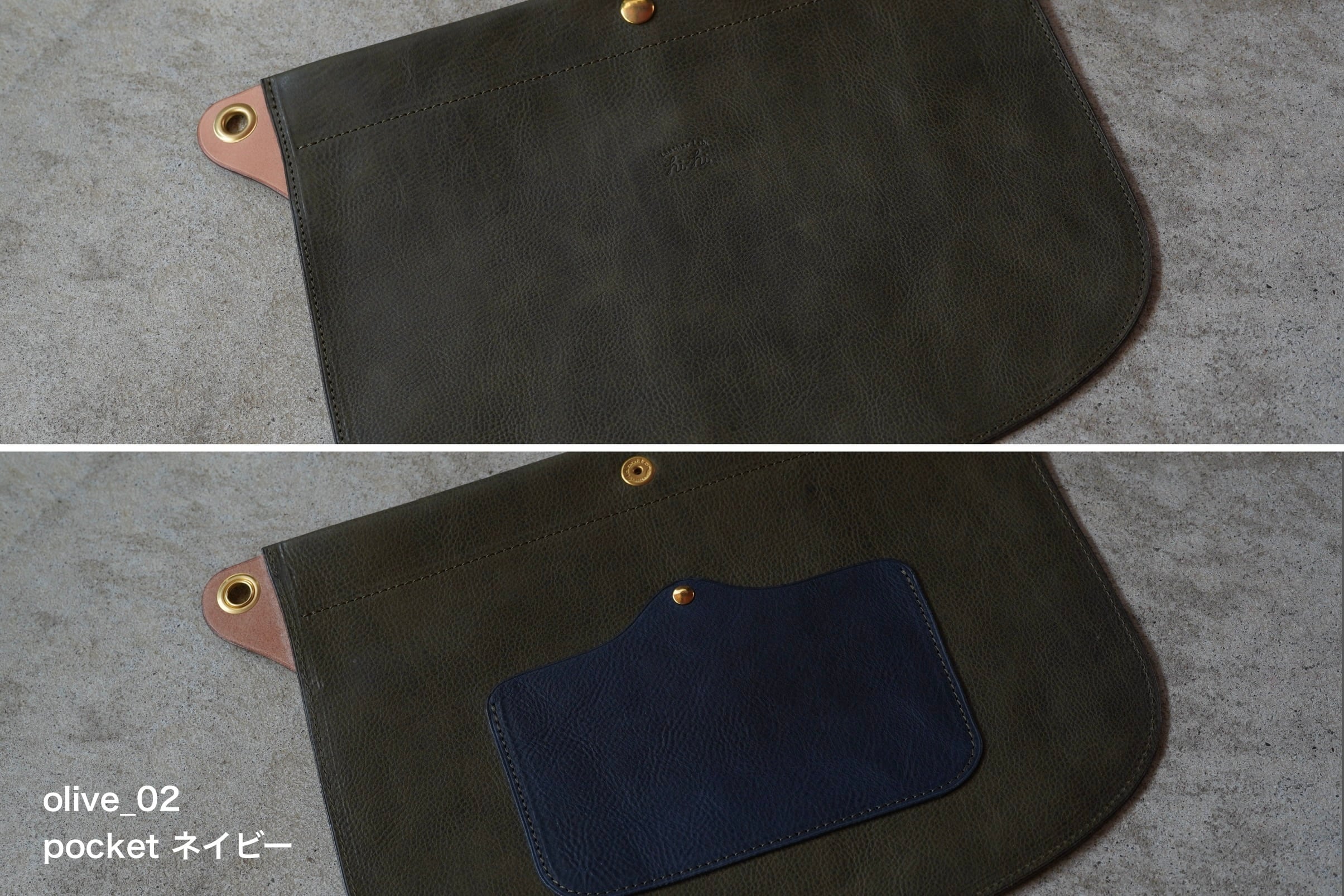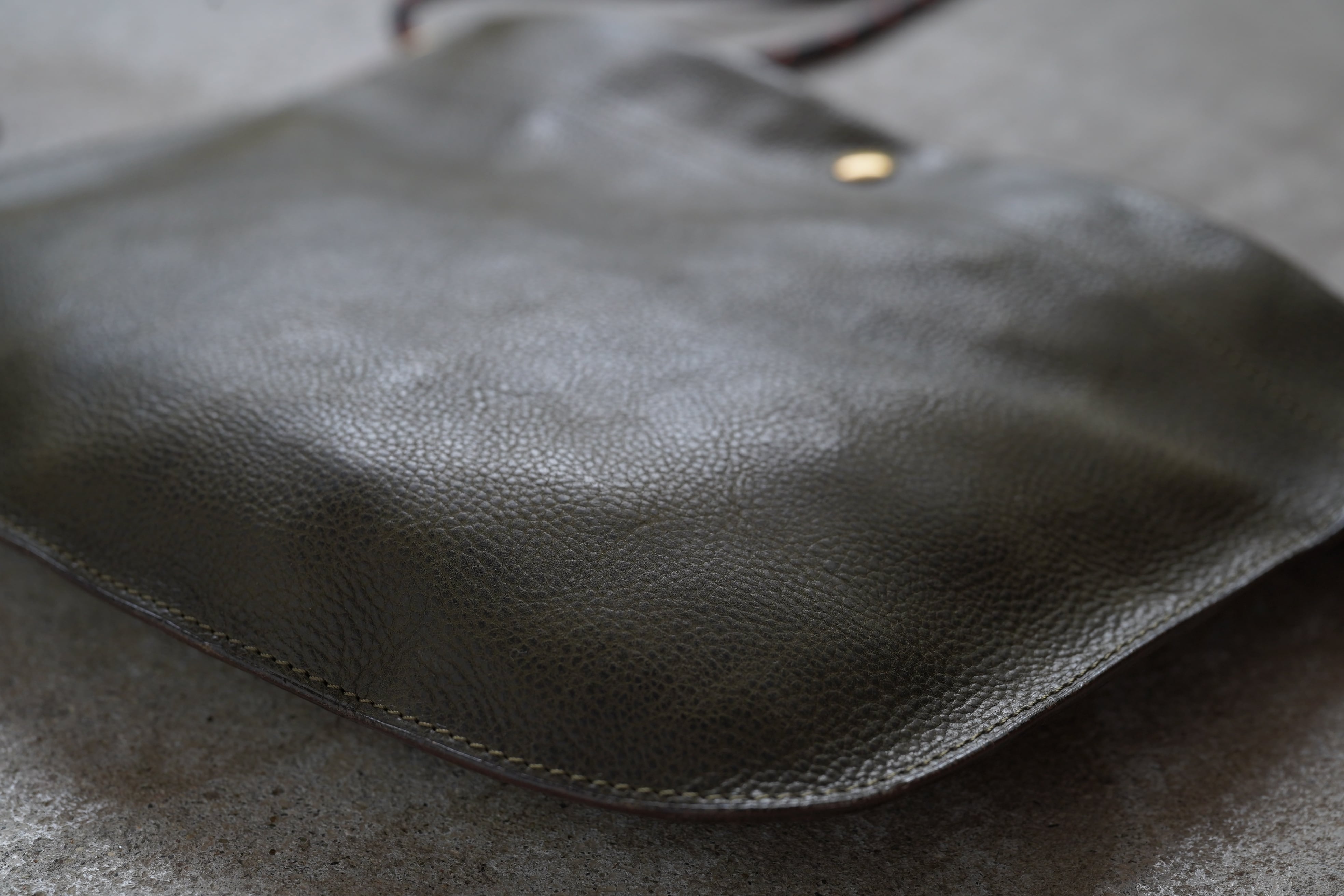 フラットな佇まいに、持ち物を入れ身につけるとふっくらと膨らみ、それが馴染んでいき、連れ歩くごとに革の表情が深まっていきます。