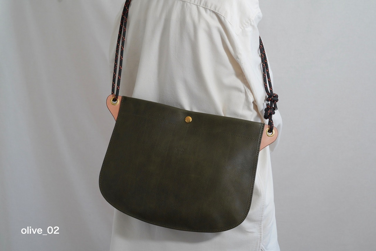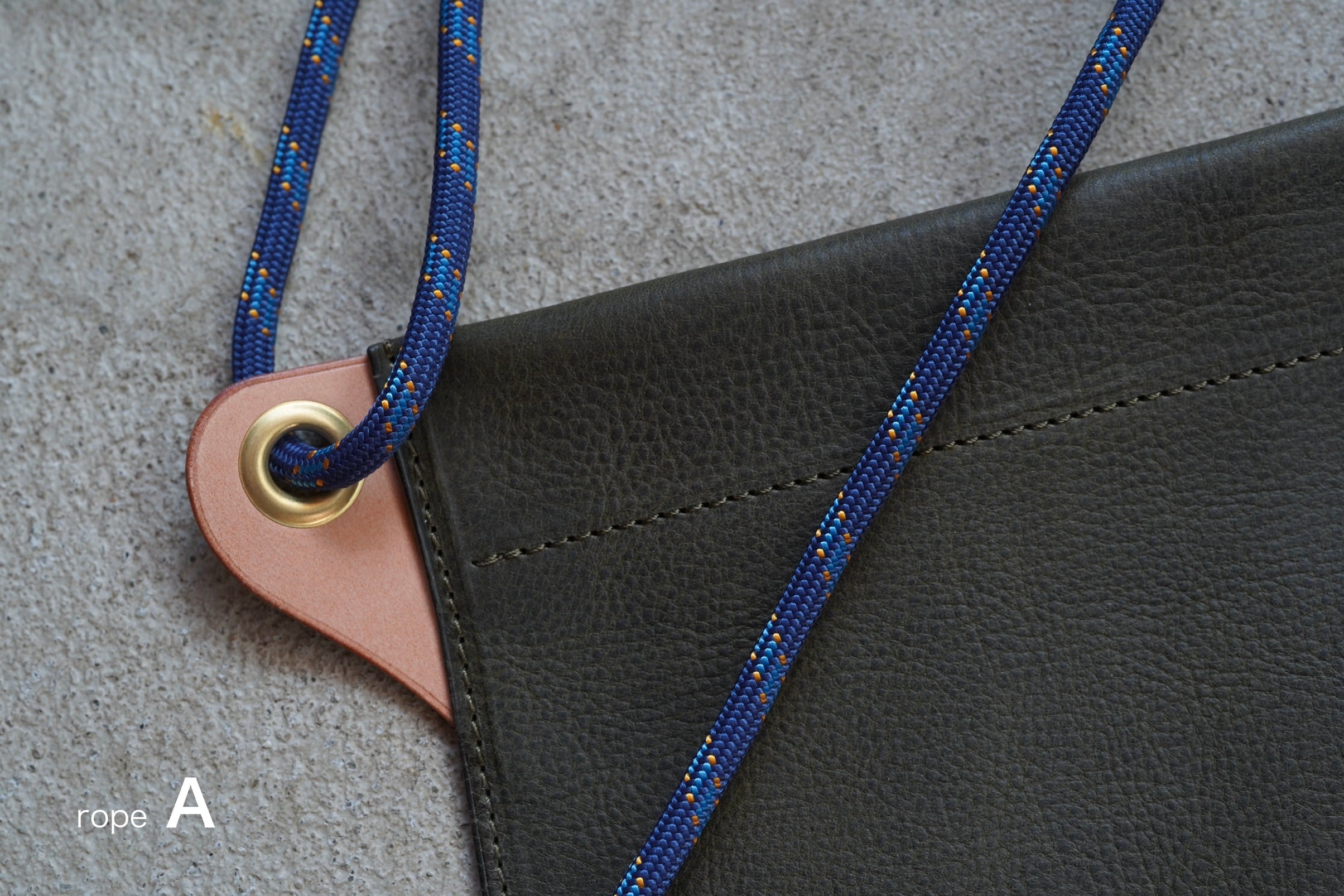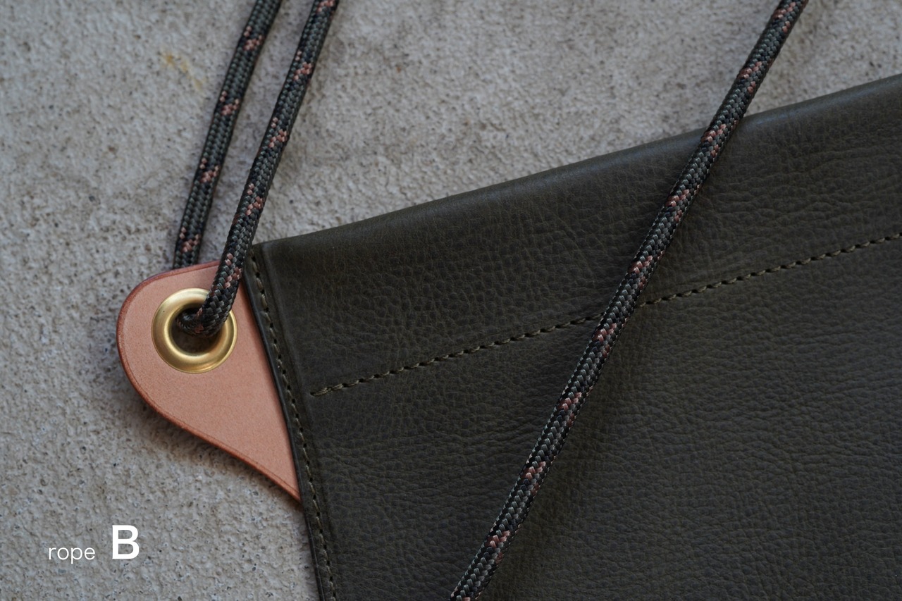 このサコッシュは、革とアウトドアロープを組み合わせたものです。