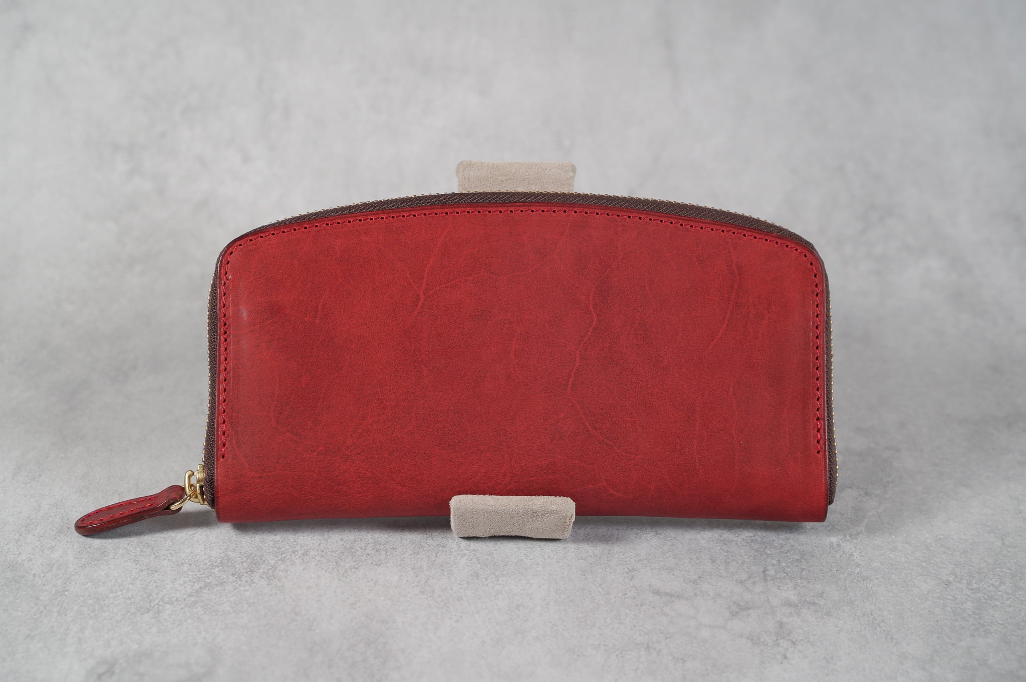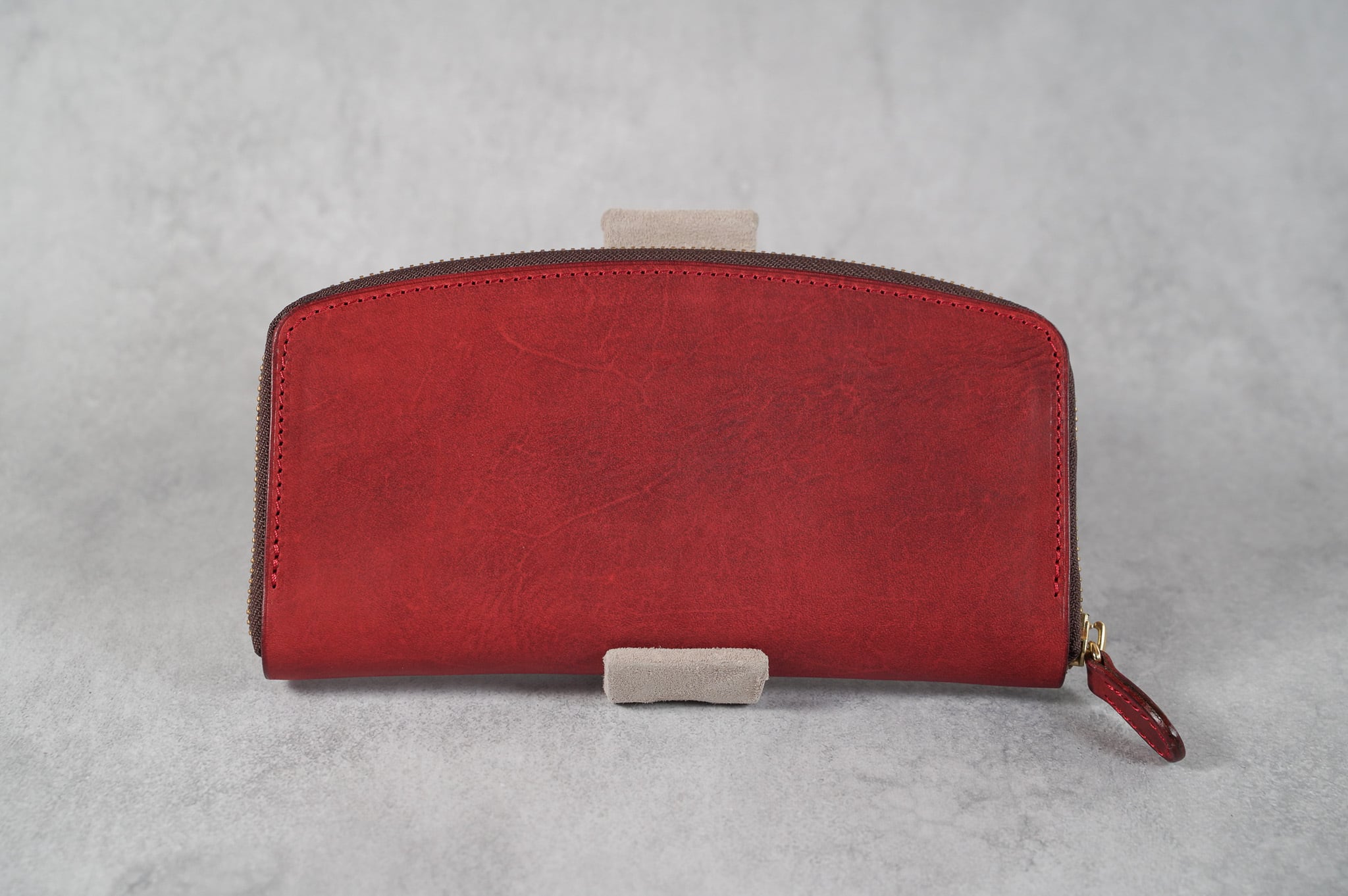 緩やかなアーチを描いた優しい印象のラウンドファスナーウォレットです。