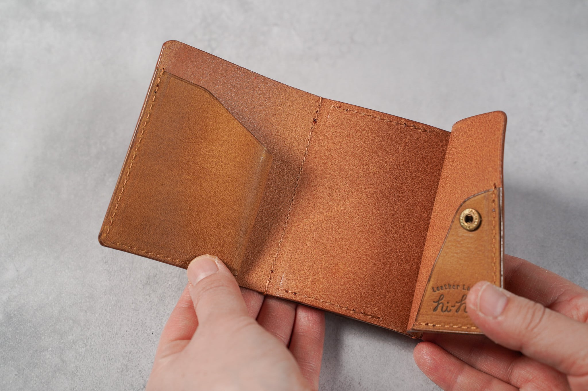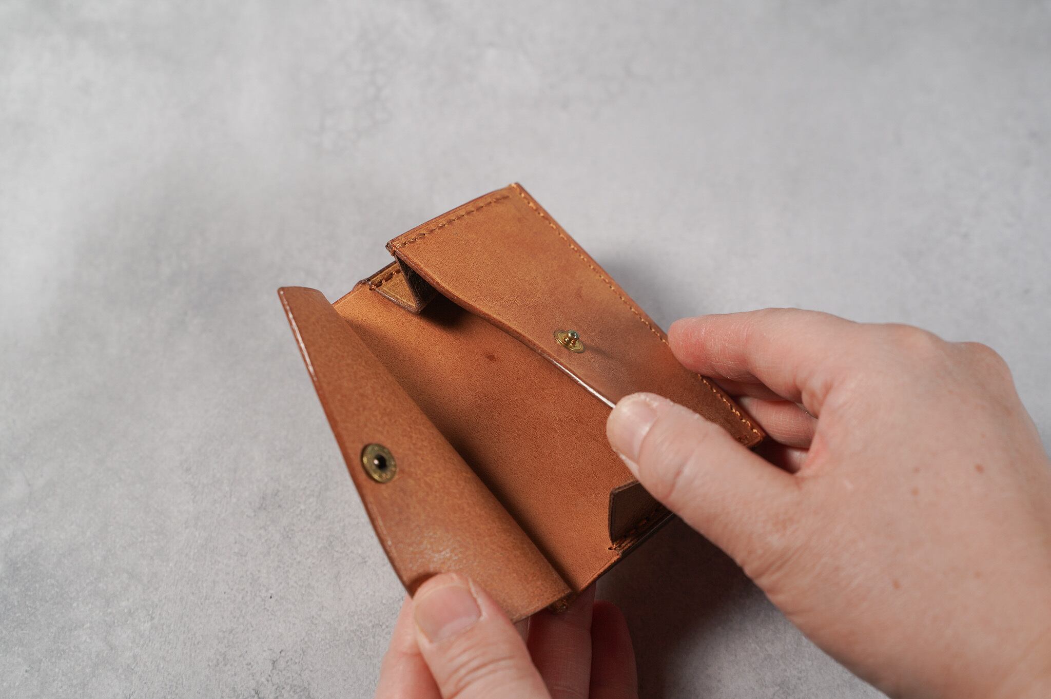 手のひらに収まる、ミニマムな容量の財布です。