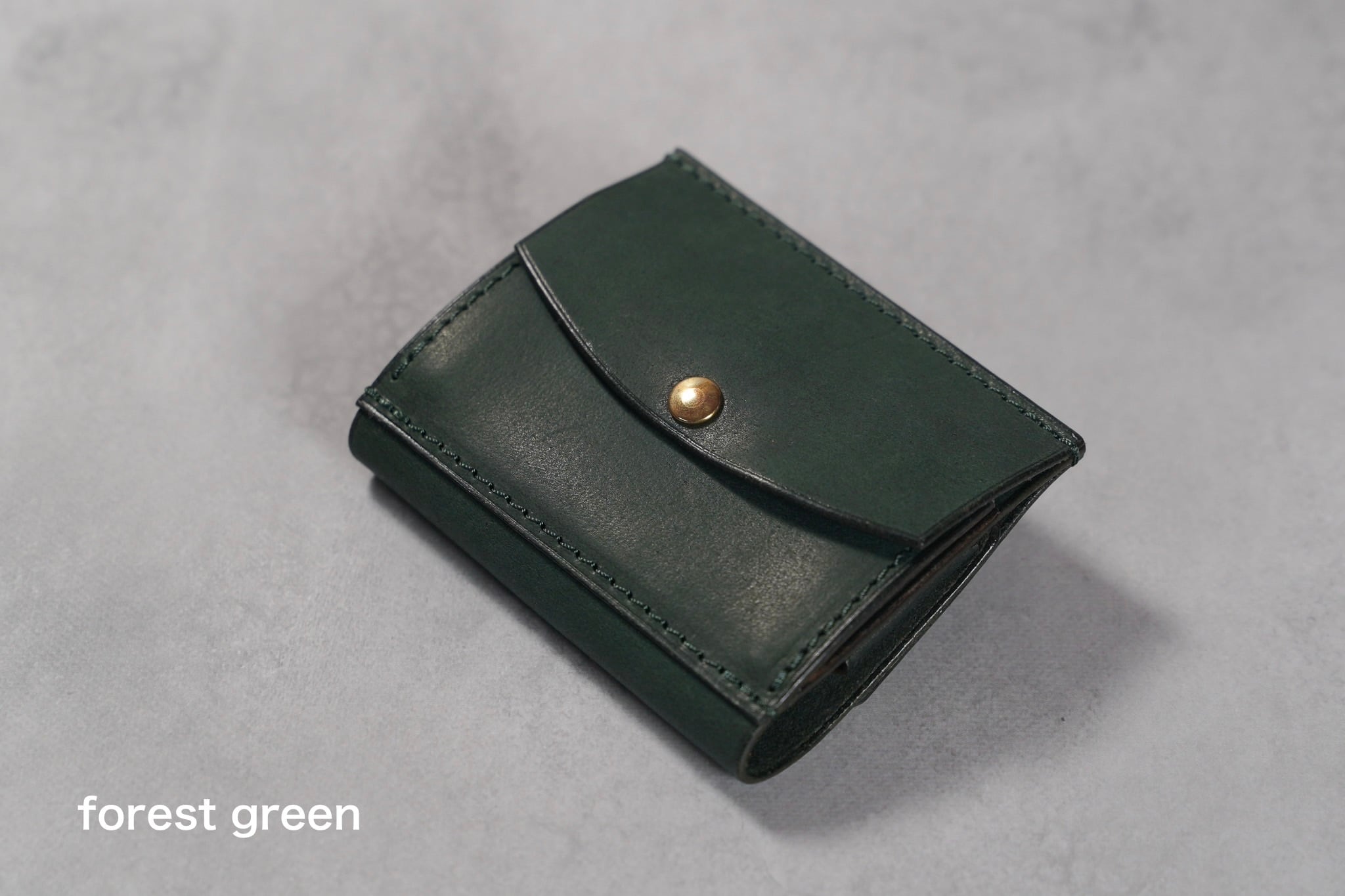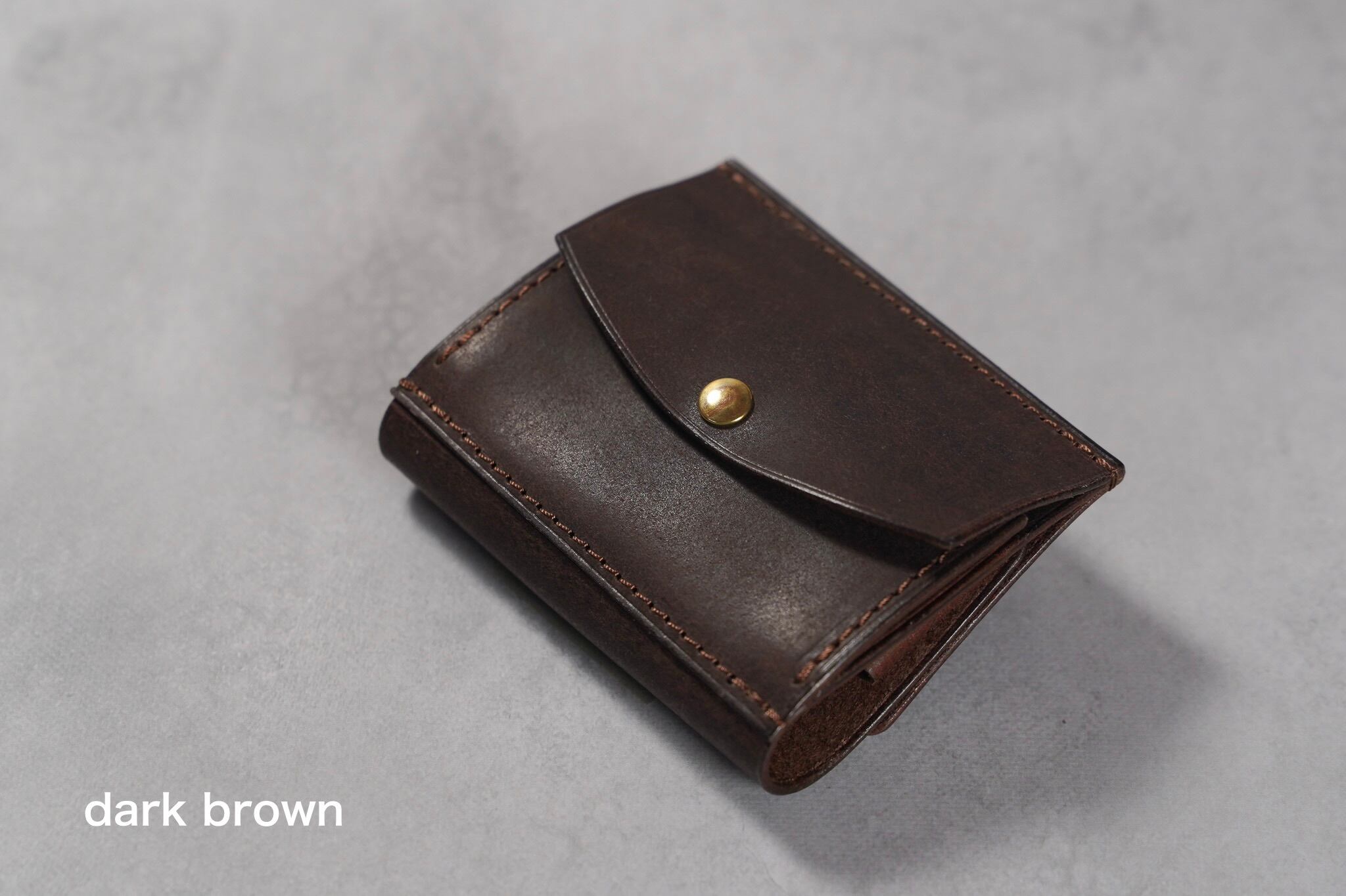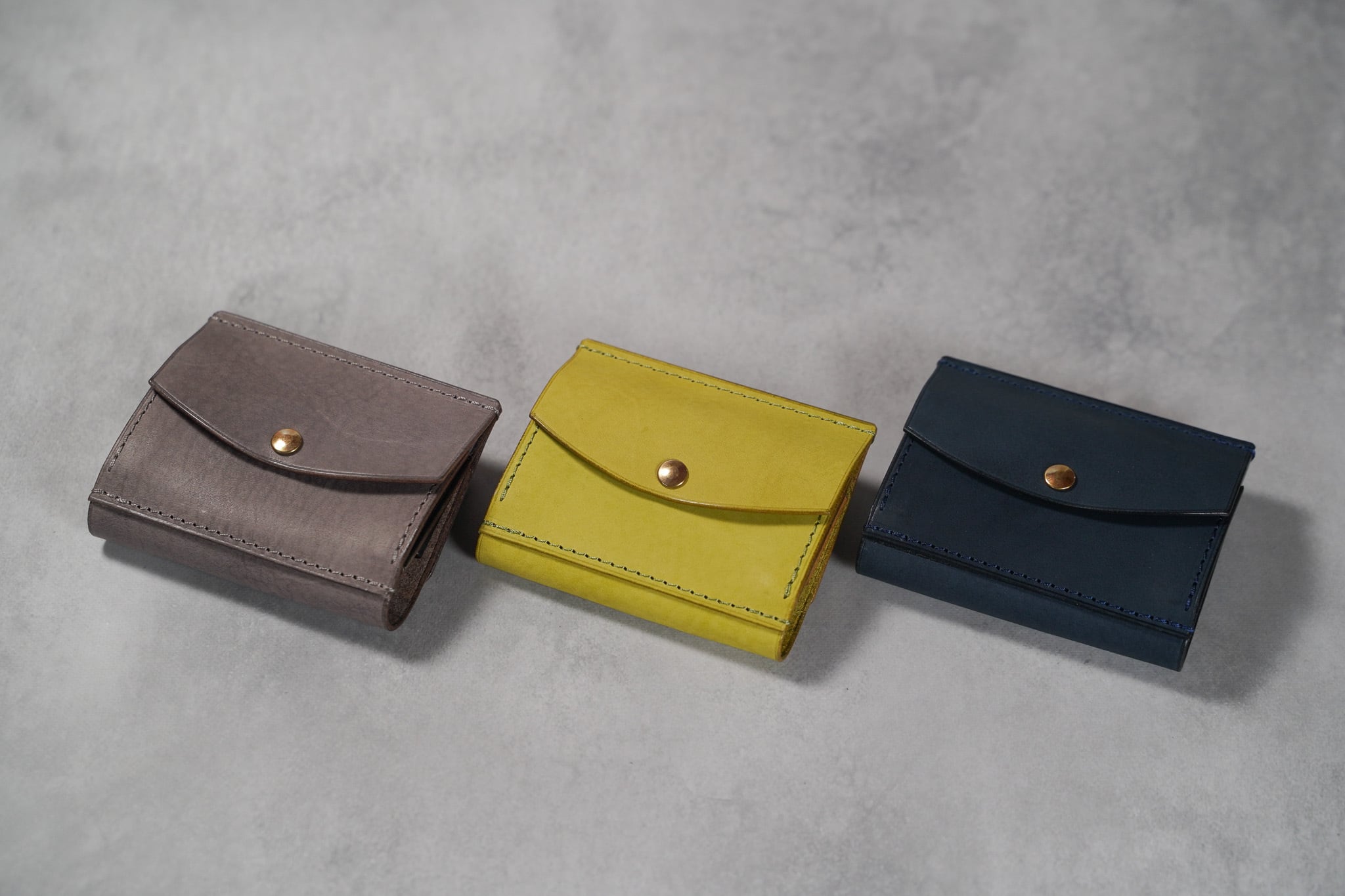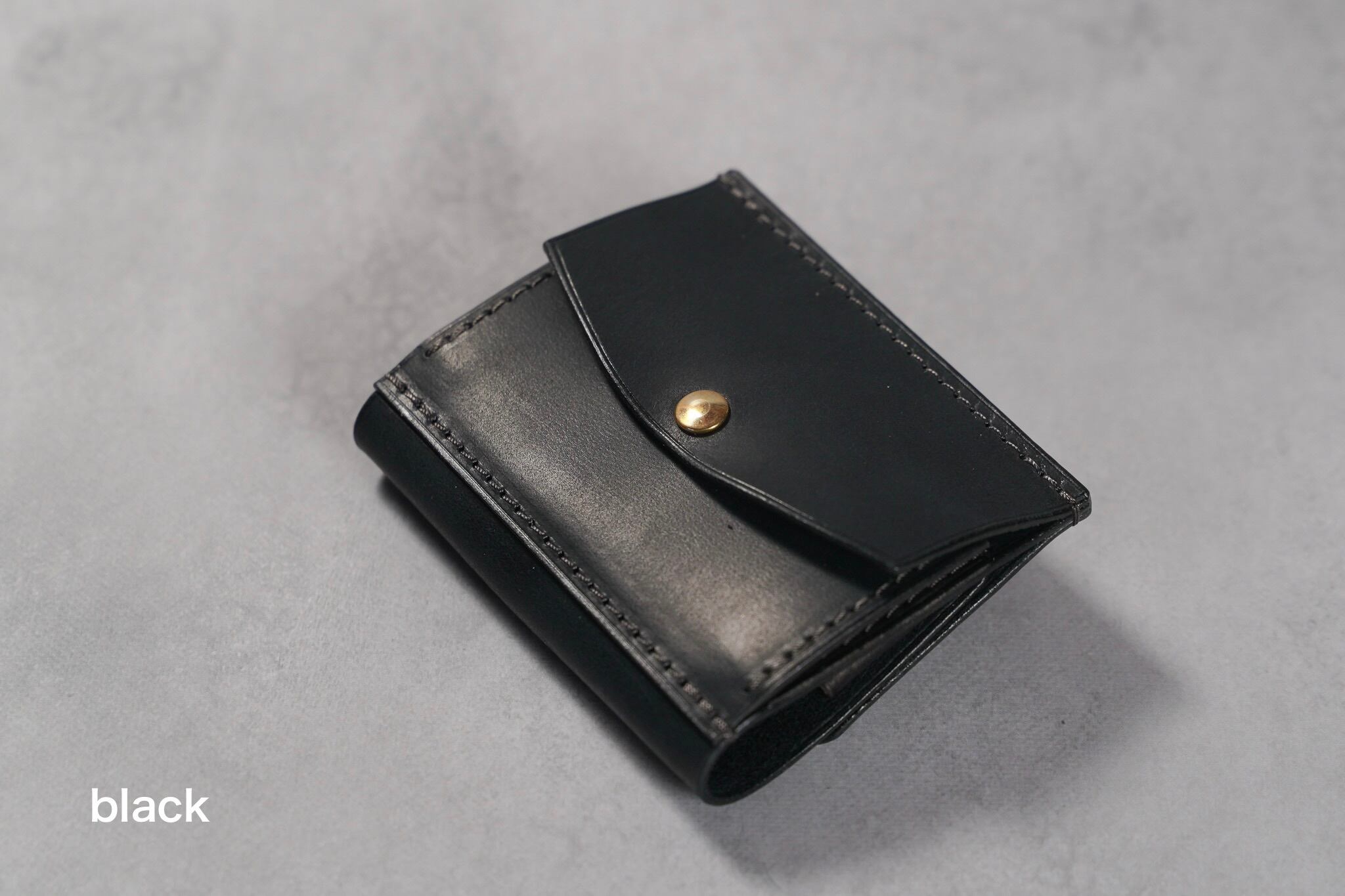 お札は約10枚、カードはプラスチック製の厚さのものを約5枚収納でき、小銭入れは浅めで見やすく、財布を畳んだ時は外側にあるので、見た目以上の容量です。
