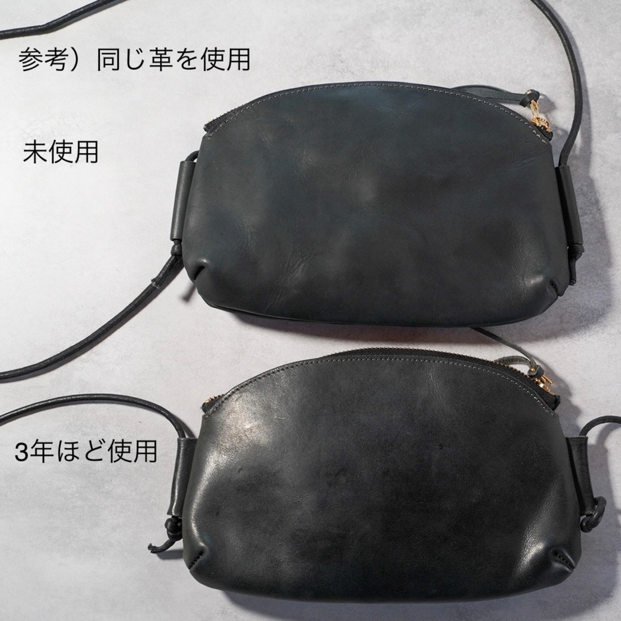 素材:牛革(植物タンニン鞣し)、YKKファスナー、ワックスコード